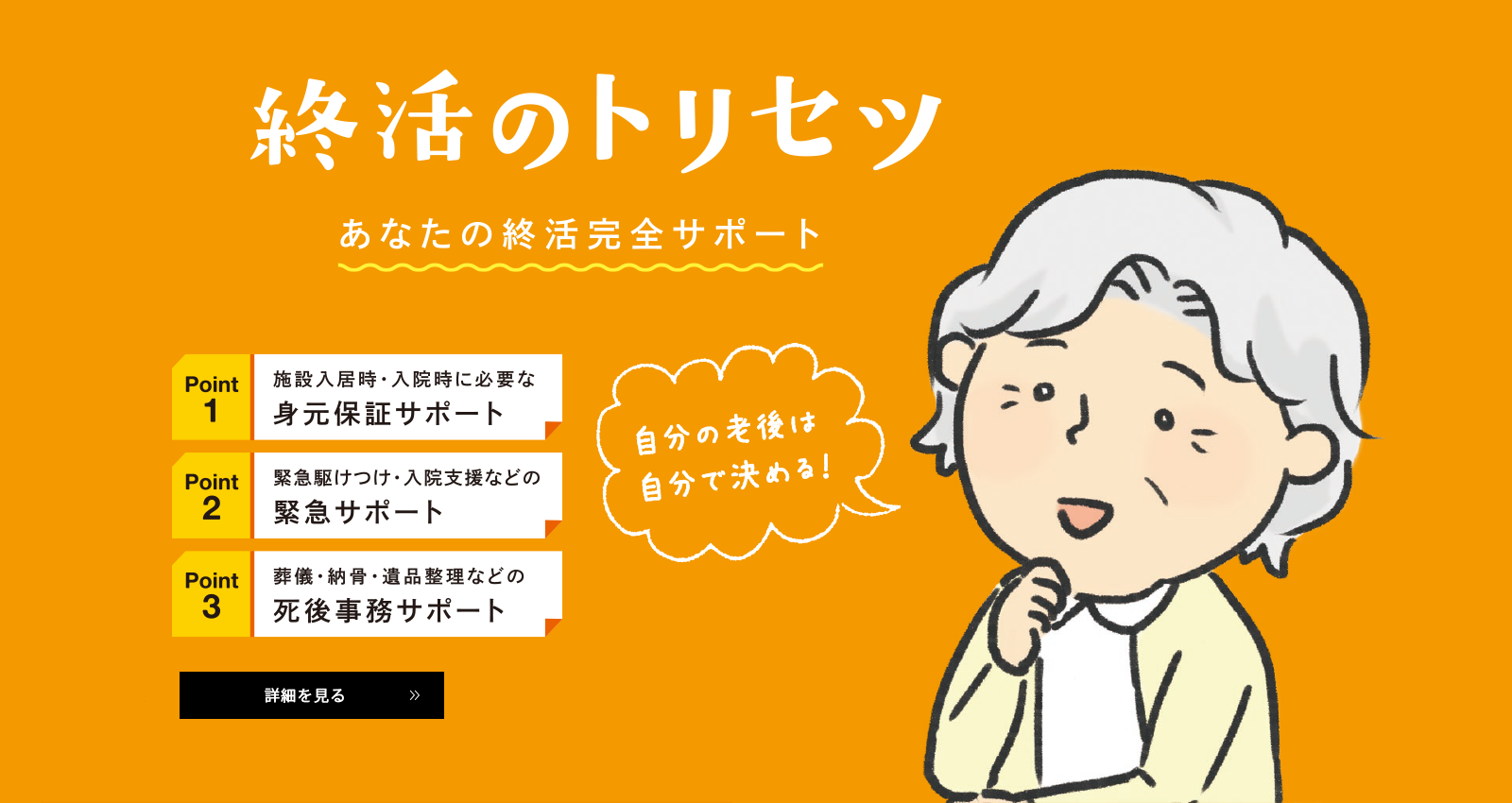 身元保証支援高齢者施設などへの入居や病院への入院に際し、身元保証人・緊急時連絡先となります。